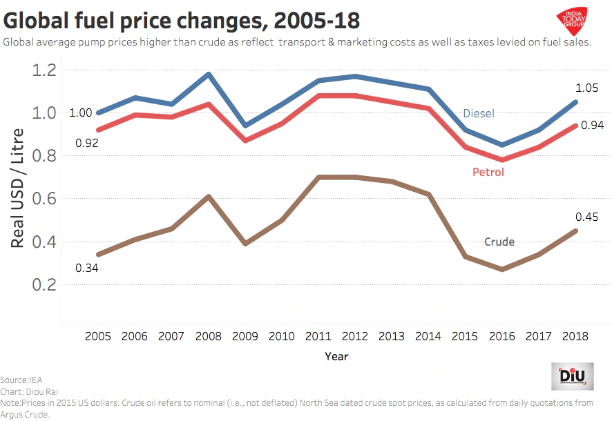 First, let’s talk about how India’s public sector oil marketing companies (ex- Indian Oil, BPCL etc. ) price diesel and petrol. They follow Trade Parity Pricing aka TPP. As the name suggests, it’s based on the relation between how much we import and how much we export. So the oil pricing is based on the price for petrol and diesel prevailing in the international markets, which assumes that 80% of the petrol and diesel is imported and 20% is exported. After this, the dollars are converted into rupees. The Indian rupee is weaker than the US dollar. Further add to this the cost of inland freight, marketing costs and margins charged by the oil companies, the dealer commission and last (but definitely not least) TAXES.