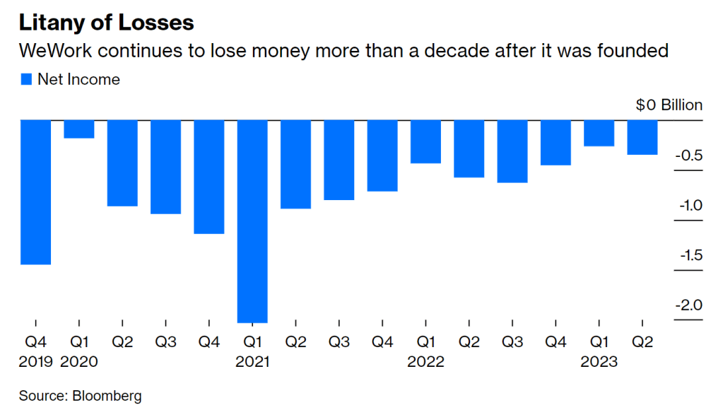 Somehow, they managed to survive the pandemic. They focused on their flexible working space offerings and catered to larger firms. But all of these were merely survival techniques. Their recent earnings report from FY24 Q2 painted an alarming picture. WeWork’s long term lease obligations were worth $13 billion and projected future income from rents was merely worth $9 billion. A $4 billion gap is no joke. Further, the company maintained $205 million worth of cash, just a tenth of its current liabilities of $2.2 billion. They finally filed for bankrupty on Nov 6, 2023.
