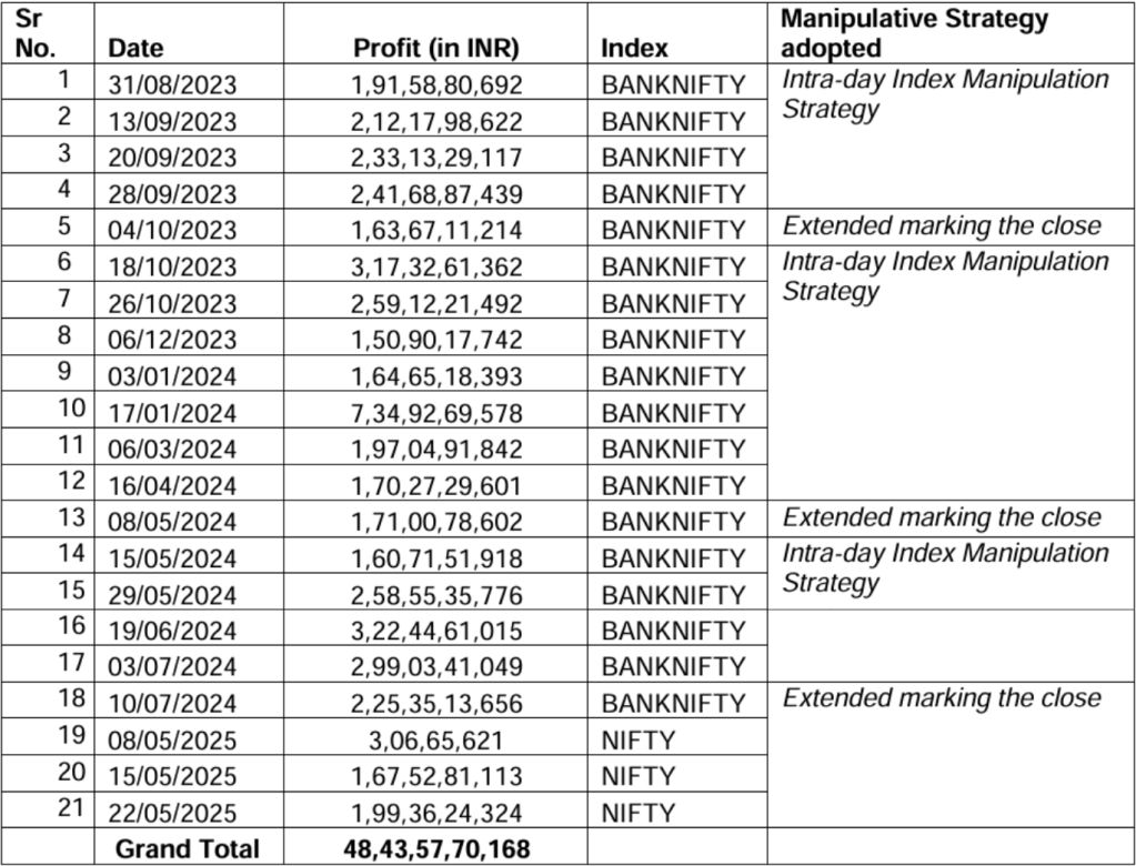 After the court case, SEBI looked at what Jane Street had been up to, purely out of curiosity. When they looked at their profit and loss trail for the period Jan 2023 – March 2025, some eyebrows were raised. They had reported losses as well, but nothing compared to the insane profits they had bagged from Nifty Bank options. They dug deeper and shortlisted 18 days, most of them expiry days, and noticed a pattern like the case of 17/01/2024.